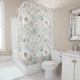 Enhance your bathroom with this beautiful autumn-inspired shower curtain featuring a tossed pattern of blue hydrangeas and orange peonies with lush leaves.  The soft taupe pink background creates a warm, inviting atmosphere, perfect for adding a touch of nature and elegance to your home decor. Jenn Steffen Art for Studio Posies.