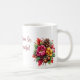 Coffee mug is shown with a lovely autumn pinecone and acorns floral art print. Autumn Is Beautiful Text.