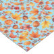 Beautiful autumn theme for your Thanksgiving table! Golden and russet leaves, pink and red flowers, red berries and brown nuts combine on a sky-blue background.