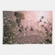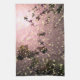 A pretty pink, white, yellow, green and black art design of sunlight reflected on water and falling autumn leaves.