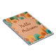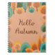 Autumn landscape with abstract flat handdrawn forest, trees and lettering Hello Autumn vintage Illustration