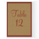 This burlap sack inspired Table Number card with PRINTED rust coloured ribbon and PRINTED burlap background would be ideal for an Autumn or brown themed wedding with its earth tones and rustic look. **You MUST change the number 11's to each of the table numbers you need, add it to your cart, and then return and repeat the process until you have all the individually numbered cards that you need in your cart. ALSO, if you change fonts, or the size of the font, some of the design and/or text may get cut-off. Everything will print as you see it on your monitor. I will not see changes you make, and Zazzle will NOT correct anything (typos, mis-alignment etc.). The text is all customizable. You can select one of 2 sizes for the table number card. If you need help with this product, please email me BEFORE you place your order. If you require any other matching items, please email your request to niteowlstudio@gmail.com