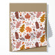 Embrace the beauty of fall with this charming autumn-themed pattern featuring an array of leaves, berries, and pinecones in warm, earthy tones. Set against a crisp white background, this design captures the essence of the season with its rich oranges, browns, and muted greens. Perfect for creating cozy home decor, seasonal crafts, or autumn-inspired fashion accessories, this pattern adds a touch of nature's splendour to any project. The intricate details and vibrant colours make it ideal for those looking to infuse their creations with the warmth and coziness of the fall season.