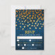 This rustic and grunge wedding rsvp card comes with a meal choice option for guests and features gold leaves on a blue distressed background. The text combines italic and serif fonts for a modern and stylish look. This will be perfect for autumn fall weddings.