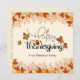 Celebrate the season of gratitude with this beautifully designed Thanksgiving card. The border features vibrant autumn leaves in warm hues of orange, red, and gold, perfectly framing the "Happy Thanksgiving" message in a playful font. Personalize the card with your family’s name or a special greeting to make it extra meaningful. This card captures the cozy and festive spirit of fall, making it a wonderful way to send your heartfelt thanks and well wishes to loved ones during the holiday season.