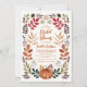 Watercolor pumpkins and autumn leaves bridal shower invitation.
