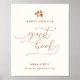 A small branch of copper beech autumn / fall foliage in watercolor and a copper and rust colour scheme decorates this elegant, simple, classy and modern fall wedding guest book sign. It features modern, elegant script calligraphy with ample flourishes. Luxurious but simple, classic but chic, modern but timeless. A lovely choice for a fall or autumn wedding featuring copper, burnt orange, terracotta, beige, red, orange and other fall hues.