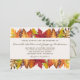 This wedding invitation is adorned with colourful fall leaves that frame the text portion. A photo of the future bride and groom adorns the back of the invitation. Please contact me if you would like help with formatting and customizing the text of this invitation.