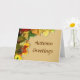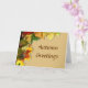 A spray of autumn leaves and nuts adorn the corner with the words Autumn Greetings. You can customize the greetings to suit your needs.