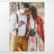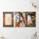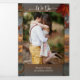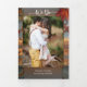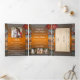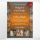 Tri-fold wedding invitation featuring several of your own favourite photos framed by an industrial rustic autumn design with colourful leaves.