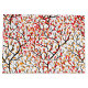 Pattern of orange and red autumn leaves with black tree and branches.