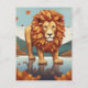 Autumn Leaves Male Lion, this creative design features a male lion made entirely of autumn leaves standing on a lake with a beautiful reflection.