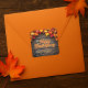 A cascade of vibrant autumn leaves dances across a rustic wood background on this customizable Thanksgiving sticker. The central "Happy Thanksgiving" message, written in a charming, celebratory font, pops with a gradient of warm, harvest hues, while a space for your family name adds a personal touch.