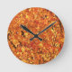 Photograph of the early morning fall sun as it beautifully shines through and highlights the gorgeous bright colors of the yellow, orange, and red autumn leaves still hanging on to the branches of an old maple tree.