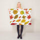 Autumn leaves on white fleece blanket