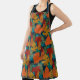 Colourful watercolor fall leaves pattern on a navy blue background.