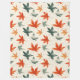 This illustration features a charming, minimalist pattern of autumn leaves in vibrant shades of red, orange, and muted green. The leaves are scattered across a soft beige background, with delicate splatters of black ink adding a touch of texture and artistic flair. The design captures the essence of fall, evoking a sense of warmth and natural beauty.