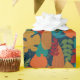 Colourful watercolor fall leaves pattern on a navy blue background.