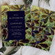 This modern botanical invitation features a dark, moody background of autumn leaves in shades of green, yellow brown and purple. Personalize it with the names of the bride and groom and other wedding details in pale yellow on a dark purple rectangle. The image of leaves is repeated on the back of the card. Ideal for a fall wedding!