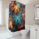 “Autumn Leaves Symphony: Raindrops on Fall Foliage Shower Curtain”. This captivating design features a collection of wet autumn leaves in vibrant shades of orange, red, and blue, adorned with sparkling raindrops. The intricate details and rich colours capture the essence of a rainy fall day, making this shower curtain a perfect addition to your seasonal home decor.
