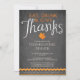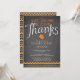 Modern Eat, Drink & Give Thanks typography set on a popular charcoal background with an orange leaf and a pretty flourish border. Flip our thanksgiving dinner invitation over to view a matching back for an extra special touch. Beautiful & unique invitation for your Thanksgiving day celebration.