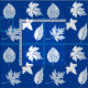 A pattern of assorted autumn leaves, digitally enhanced and coloured - white leaves on a deep cobalt blue background
