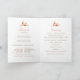 An elegant fall wedding program with script font and a watercolor wreath made up of terracotta, brown and green leaves. Personalize all text for your needs.