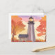 Autumn Lighthouse | Fall Foliage Watercolor Postcard
