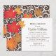 Celebrate the bride-to-be with this vibrant fall wedding bridal shower design featuring bold red, orange, and gold maple leaves over rich brown and white scrollwork. The clean layout provides space for all event details including host, RSVP contact, and registry information in warm brown typography. Customize every field for your seasonal bridal celebration.