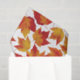 This tissue paper features a pattern of colourful autumn maple leaves on a white background.
