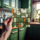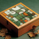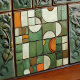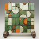 This ceramic tile is a masterpiece of visual complexity, simulating a textured assemblage of shapes and colours reminiscent of an autumnal landscape. The flat surface is a canvas for the faux relief technique, presenting an array of curved and angular forms. Hues of pumpkin orange, creamy ivory, and varying shades of olive and hunter green create a rich tapestry, while splashes of russet and speckled tan add earthy accents. The illusion of depth is achieved through meticulous shading, making the segments appear to pop out as if they were actually raised pieces. This tile, with its crackled glaze effect and intricate design, offers a warm, rustic aesthetic suitable for any space that celebrates the art of trompe-l'oeil and the beauty of fall colours.