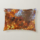 This decorative accent pillow features a geometric abstract pattern of five sided pentagon shaped mosaic tiles in brilliant autumn colours of red, orange, brown, yellow, gold, blue, grey, black and white.