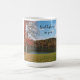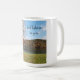 A mug with a phot of a Tennessee river in autumn with the phrase 'God believes in you"