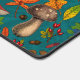 Autumn mushrooms, leaves, nuts and berries on blue desk mat