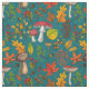 Autumn mushrooms, leaves, nuts and berries on blue fabric
