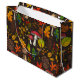 Autumn mushrooms, leaves, nuts and berries on dark large gift bag