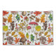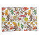 Hаnd-painted vector pattern with various autumn mushrooms, fallen leaves, acorns, berries and bugs