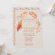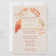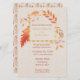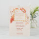 A beautiful autumn wedding invitation with orange and yellow leaf pattern on the front