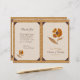 The text and background colour on this autumn pressed flower wedding program is fully customizable. The program itself is intended to be folded down the middle. You can change the text using the personalize option. For more extensive changes to the program, including changing the font, font colour, font size, or text placement, choose the "customize it" option. This is a great country looking program for a wedding in the fall or for a country wedding. The colours are various shades of autumn browns and tans. This program is currently customized for a wedding, but would also work great for an anniversary party program (renewal of vows perhaps) or even a church bulletin. All you need to do is change the wording.