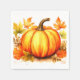 Add a festive touch to your fall gatherings with these beautiful napkins featuring a richly coloured illustration of an orange pumpkin surrounded by autumn leaves. Perfect for bringing seasonal charm to any event, these napkins are an ideal choice for Thanksgiving celebrations or any fall-themed occasion. Their vibrant design adds warmth and style to your table setting, making them a must-have for your autumn festivities.