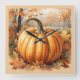 Autumn Pumpkin & Fall Leaves Square Wall Clock