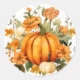 Sticker is shown in the round with a lovely fall pumpkin floral watercolor print.
