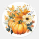 Sticker is shown in the round with a lovely fall pumpkin floral watercolor print.
