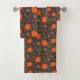 Autumn pumpkins, acorns, and leaves, on a dark brown background. Great fall and Thanksgiving home decorations.