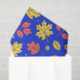 Wrap your gifts in the essence of autumn with this vibrant fall tissue paper. Set against a deep blue backdrop, the design features an inviting pattern of warm-hued pumpkins in sunny yellow and soft orange. A vibrant scatter of crimson and gold leaves, along with tiny berries and flowers, completes this festive harvest pattern, perfect for adding a touch of cozy charm to any package.