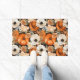 This doormat is shown with a autumn fall pumpkins and flowers print.