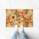 This doormat is shown with a autumn fall pumpkins and flowers print.