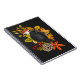 Hand-painted illustratin of a raven and autumn botanicals-leaves, mushrooms and berries