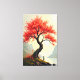 A vibrant red autumn tree reflects gracefully in still waters, creating a peaceful and picturesque scene.