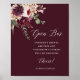 This wedding open bar sign features a watercolor flower bouquet of dahlia, garden rose, and hydrangea in burgundy red, maroon, blush pink over fall leaves. For more advanced customization of this design, please click the BLUE DESIGN TOOL BUTTON. Matching items are also available.